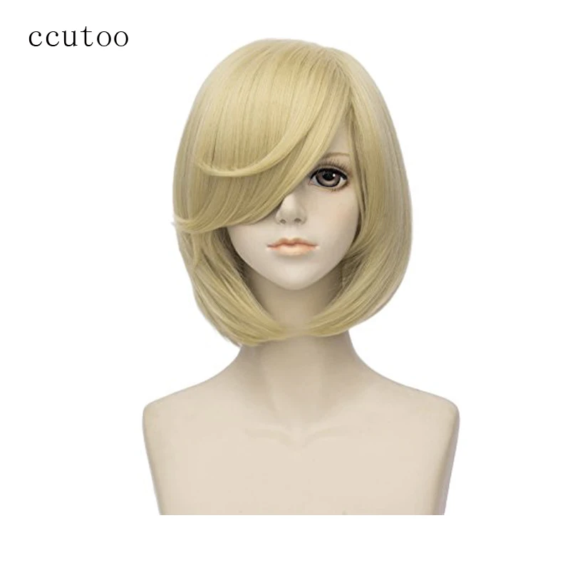 Ideal ccutoo Yuri on Ice Plisetsky Yuri 35cm Light Golden Blonde Short Female's Straight Synthetic Hair C